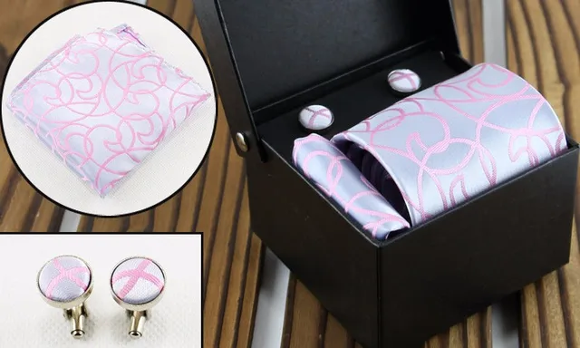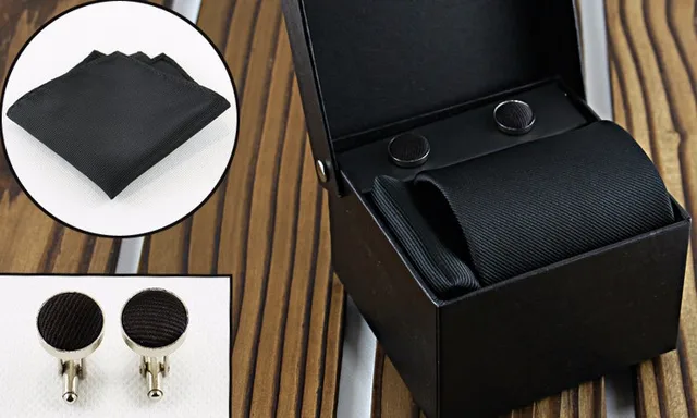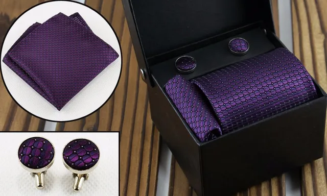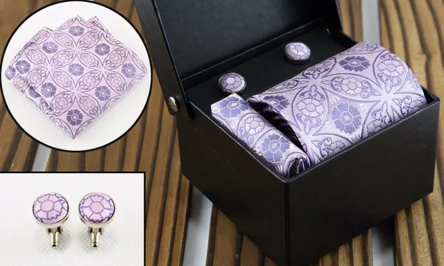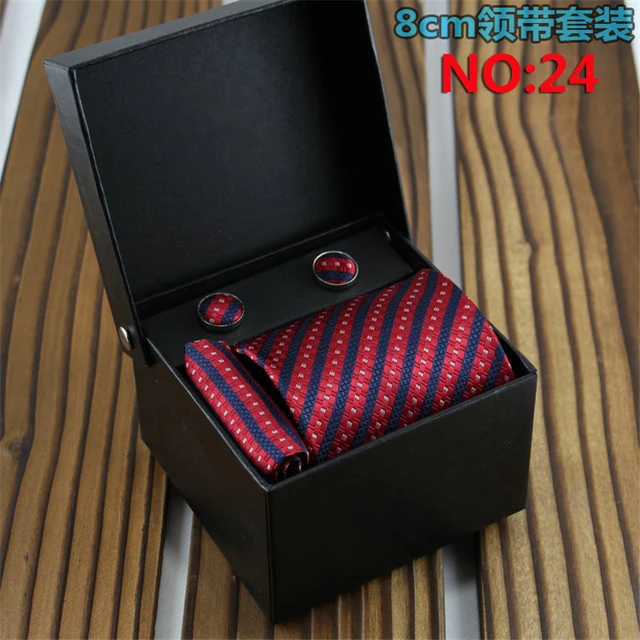 | [해외]패션 커프스 넥타이 세트 자카드 목에 두르는 세트 스트라이프 웨딩 넥타이 신랑 정장 Corbatas Cravata 짠 남성 넥타이 |