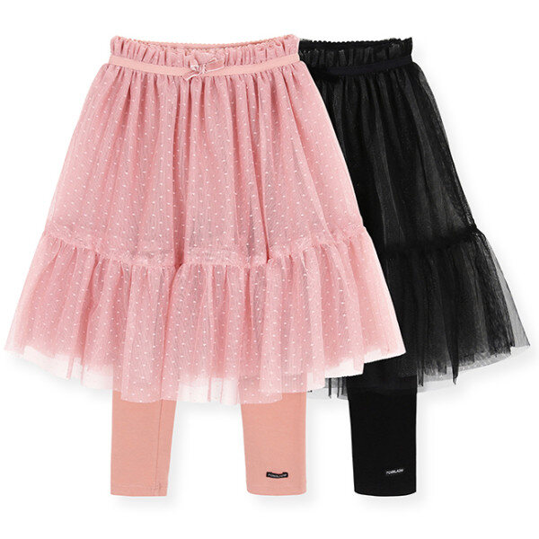 스판기가 아주 충분한 면소재의 레깅스에 컬러별로 다른 느낌의 샤를 덧댄 치랭스에요. 스커트 부분이 좀더 풍성해 보이도록 일부러 밑단에 프릴단을 더해주었답니다. 핑크는 도트 샤가 돋보이게, 블랙은 안쪽에 반짝반짝 샤를 더해 컬러별로 다른 느낌을 구성했구성했어요.