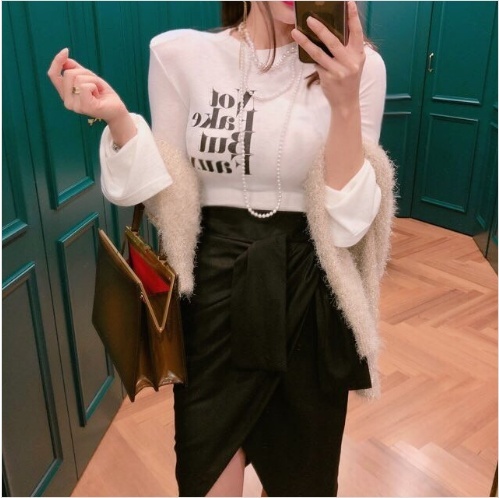 Women`s T-shirts with Shoulder Pads Black Ivory