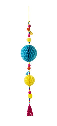 - If features fabric tassels and pom poms, wooden Bead detail and paper honeycombs