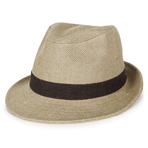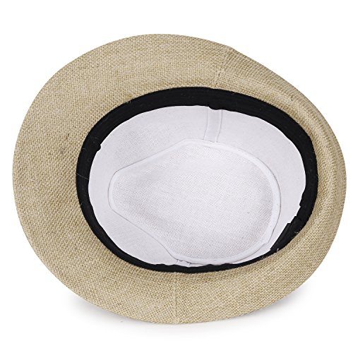 Binding : Apparel Product Description ililily Small Brim Structured Trilby Straw Fedora Fine Mesh Braid Panama Hat Style: small brim structured classic trilby straw fedora hat in 3 colors Design detail: TWO-TONE COLOR HEMP TRILBY FINE MESH BRAID STREW FEDORA HAT with CONTRAST HATBAND / high quality and designed for classic fashion / suitable for both daily look and outdoor activities, perfect for travling, daily life, camping. made with lightweight 100% HEMP hat, it screams comfort and breathability for every day. Brim: modern narrow brim fedora hat with down-turned front Crown: TEARDROP SHAPED TOP hat with PINCHED CROWN Inner band: 23.6'/ 60cm / brim width: approx. 2.20'/ 5.6cm Material: 100% Hemp Wash Instruction: Dryclean Only Measurement: Large Inner Band:7 1/2 (60cm)