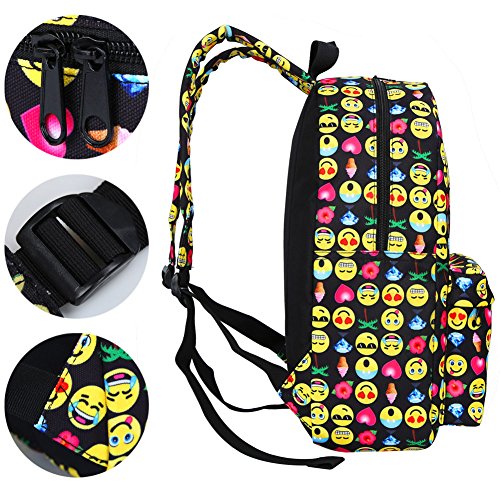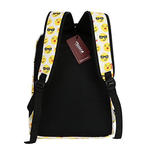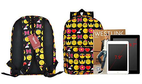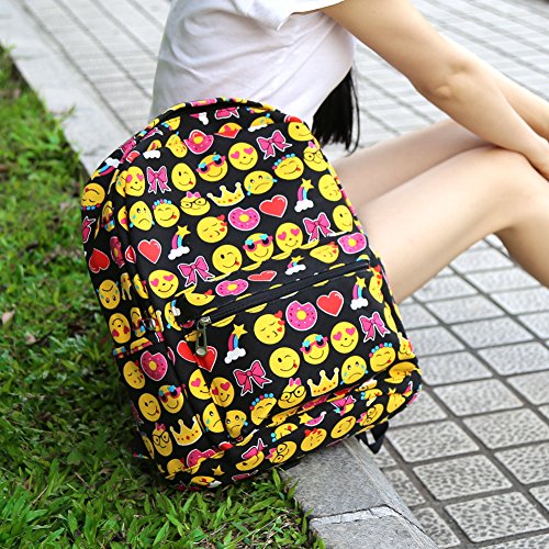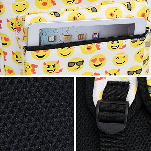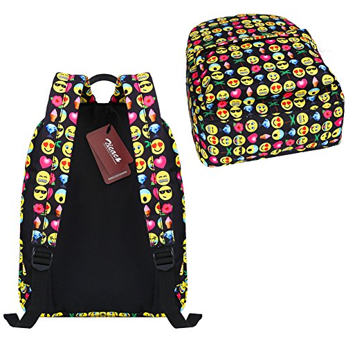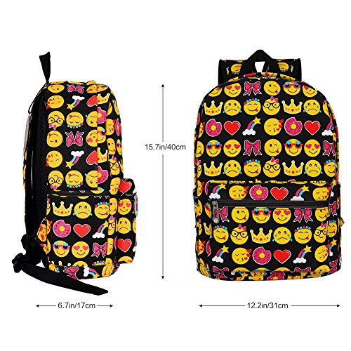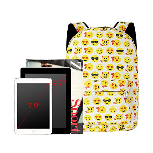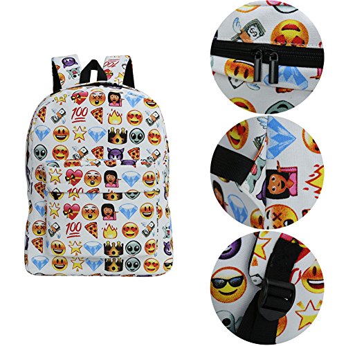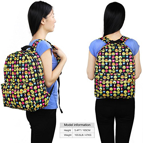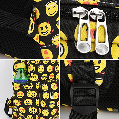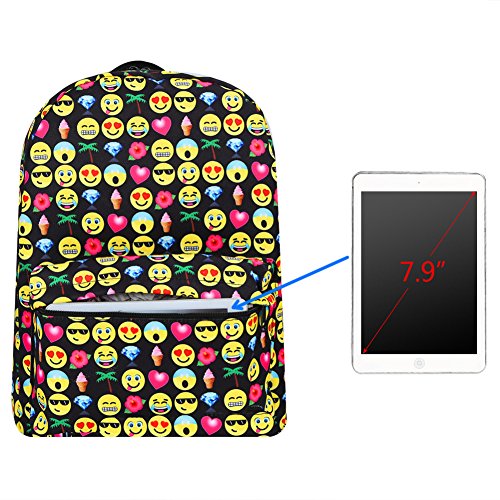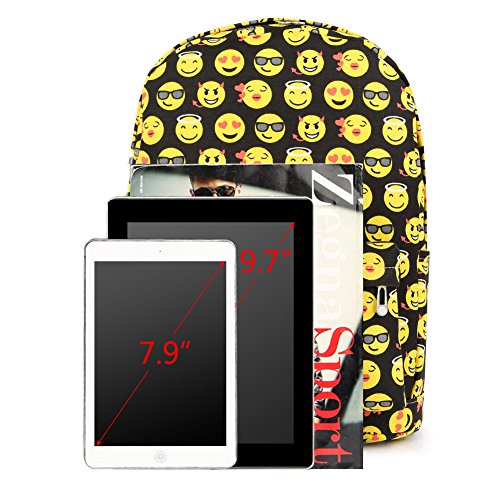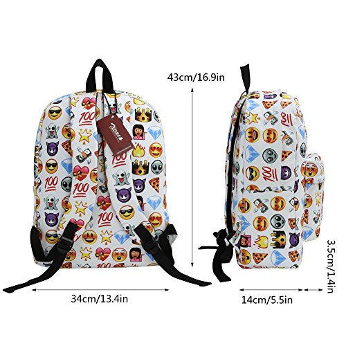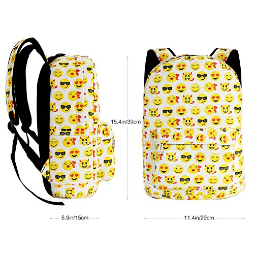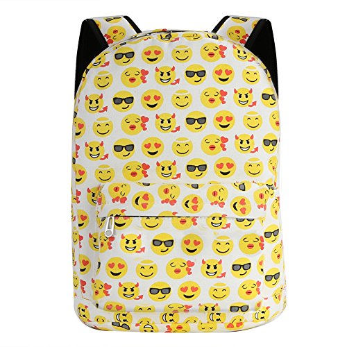 Product Description Zicac Children Students Canvas Emoji Backpack Smiling Face Satchel Hiking Daypack Material: Canvas Color: Black,Blue,Yellow,White Size: 12.2x6.7x15.7in/31x17x40cm (Length x Width x Height) for Yellow,Blue 11.8x5.1x15.7in/30x13x40cm (Length x Width x Height) for Black(Without side pocket) 13.4x5.5x16.9in/34x14x43cm (Length x Width x Height) for White(Without side pocket) Capacity:Less than 14" laptop, stationery, A4 books, kettle, mobile phones, Ipad ,ideal for school, weekend out, travel or casual daily use Structure: 1 x main zipper bag, 1x front zipper pocket,1 x interlayer pocket,2 x side pockets Features: Zipper closure, and trendy Emoji pattern design. Adjustable shoulder strap and well sewing top handle, provides great convenience to use. Back side with breathable mesh, more comfortable for carrying. With larger load bearing, great for school, weekend, travel and everyday use. Note: The above measured size for your reference,there may be a slight difference due to manual measurement. Color of the item may be slightly different as different display settings. Package included: 1 x Backpack 0 |