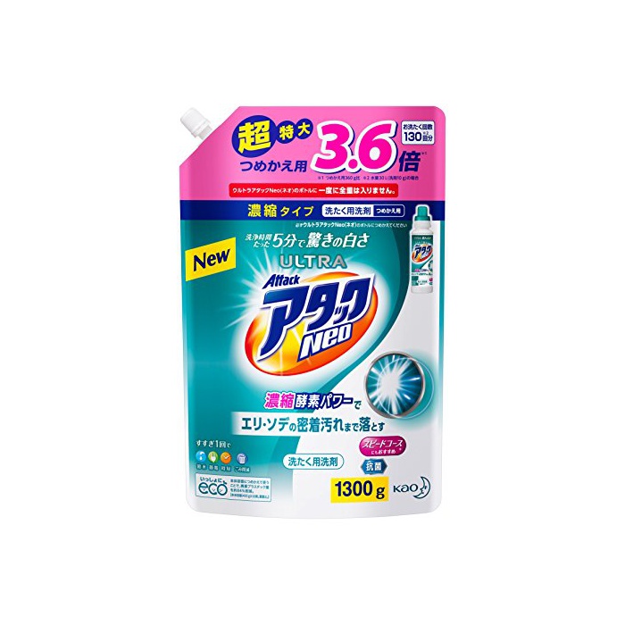 원본상품명: 【大容量】ウルトラアタックNeo 洗濯洗? 濃縮液? 詰替用 1300g
