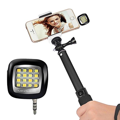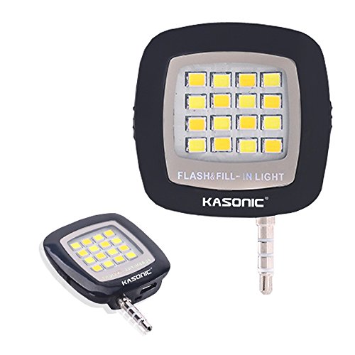 16 LED Flash Light, Kasonic Portable Mini Night Using Selfie Enhancing Dimmable Cellphone Camera Fill-in Light Pocket Spotligfor Iphone,Ipad,Samsung Galaxy,Android Windows Phone,Tablets (Black)