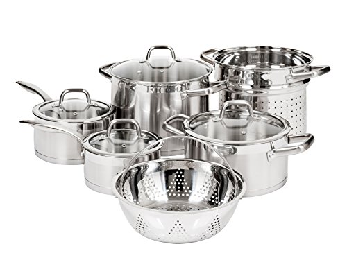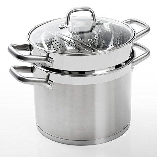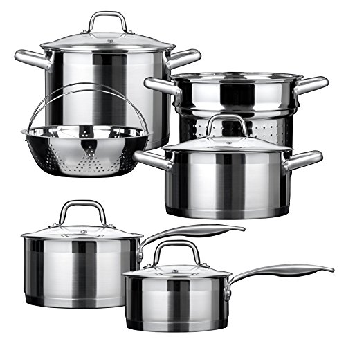 • Includes 1.6-quart, 2.5-quart sauce pans with lids; 4.2-quart casserole with lid; 8.6-quart stock pot with lid; boiler basket and steamer basket;