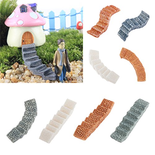 Dovewill 전8색 선택다 DIY 장식 마이크로 풍경 모형 정원미 경관 돌하우스 분재용 계단 - 그레이 미니어처