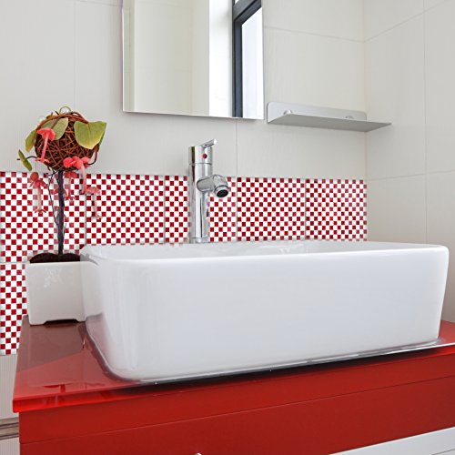 Home Decor Line CR-31122 Mosaic Red & White Peel & Stick Tiles,