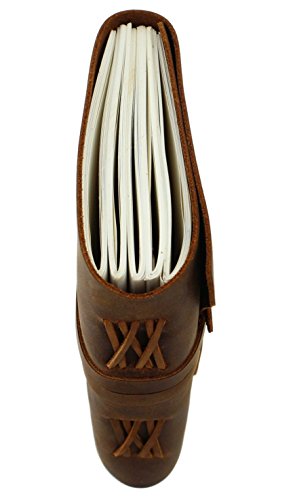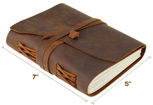 ARTISAN-CRAFTED AND HANDMADE: Genuine 100% Top Grain Crazy Horse Leather with the rustic vintage look, feel, and smell of aged leather. Scratches and marks can be rubbed out. Every part of the journal is real leather: cover, binding, stitching (NO ROPE OR JUTE anywhere.) Leather strap wraps around to close journal or serve as a handy bookmark. Perfect 5X7 medium size fits neatly into backpack, bag, or purse.