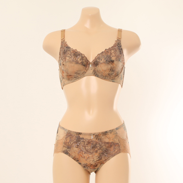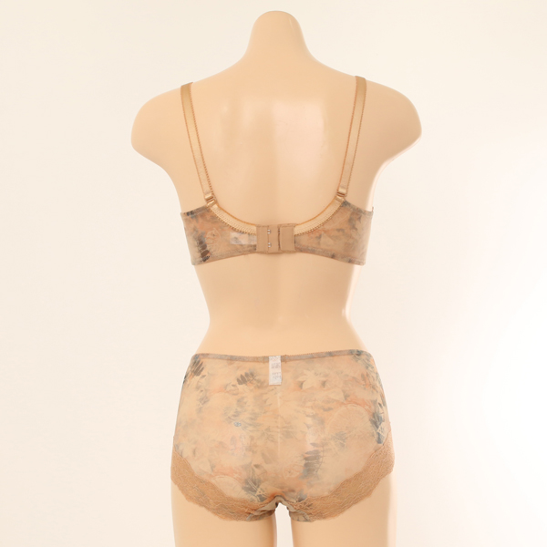 우수한 신축성과 부드러운 촉감을 자랑하는 프린트망을사용한 풀컵 홑겹 브라입니다.