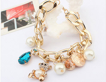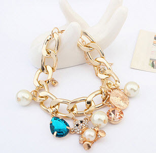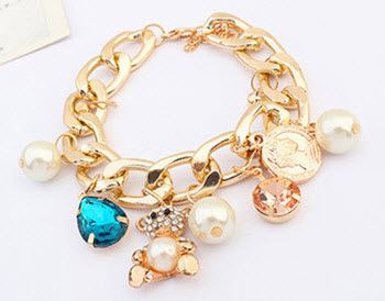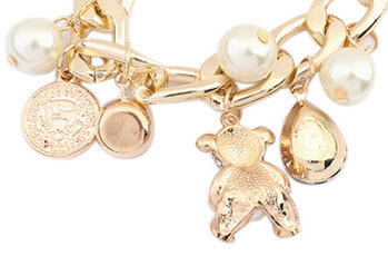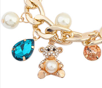 berlian imitasi mutiara kristal beruang emas gelang Bangle crystal pearl rhinestone bracelet Bangle gold bears JEW SJA0846535262 bsw qty000