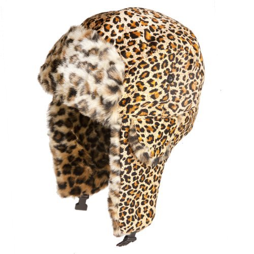 (Accessoryo)/Accessories/Hats/DIRECT FROM USA/Accessoryo Women's Leopard Print Style Trapper Hat with Faux Fur trimming and ear lining