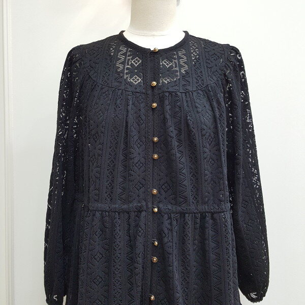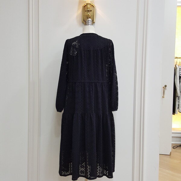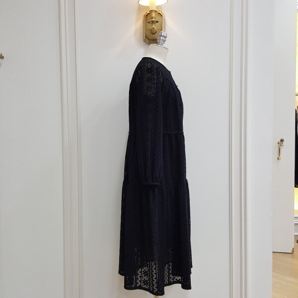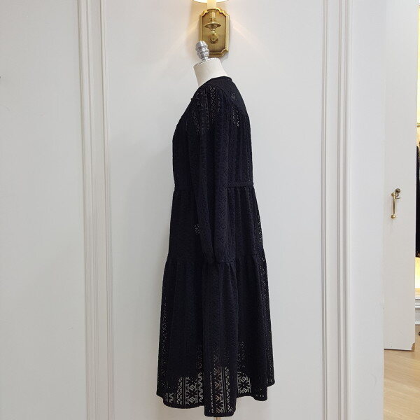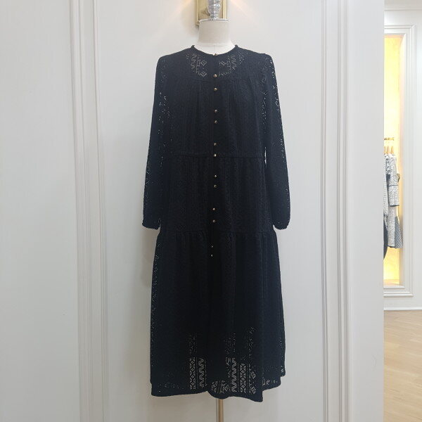 레이스로 된 롱원피스. 가슴라인에 단추를 달아 포인트를줌.
