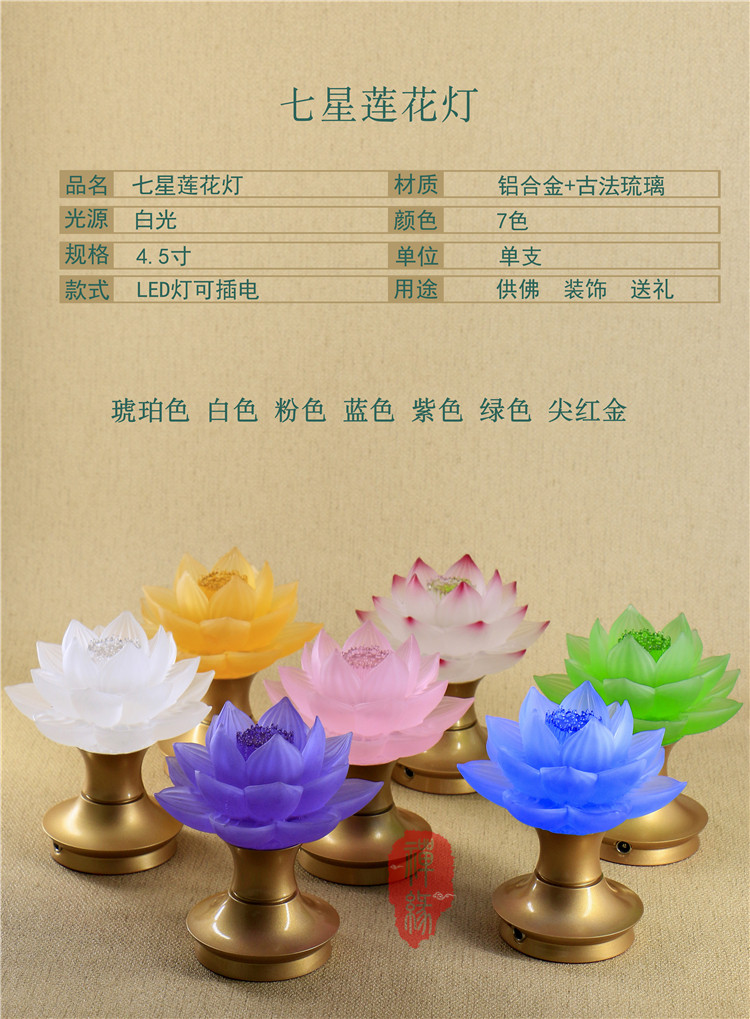 单支 佛教用品LED琉璃七星莲花灯供佛灯佛堂佛具佛前供灯长明灯