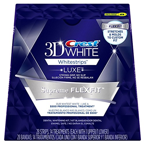 -. Binding : Misc. -. Brand : Crest -. EAN : 0889714002100 -. Feature : Our whitest white for a multi-dimensional smile / Whitens teeth as well as a $500 professional teeth whitening treatment, satisfaction guaranteed / Exclusive FlexFit technology design stretches and molds to custom fit your unique smile / The no slip grip stays put so you can talk and drink water while whitening teeth / The strip molds to the shape of your teeth and comes off cleanly -. Label : PROCTER & GAMBLE CONSUMER -. Manufacturer : PROCTER & GAMBLE CONSUMER -. MPN : 80277484 -. PackageQuantity : 2 -. PartNumber : 80277484 -. ProductGroup : Beauty -. ProductTypeName : BEAUTY -. Publisher : PROCTER & GAMBLE CONSUMER -. Studio : PROCTER & GAMBLE CONSUMER -. Title : Crest 3D Luxe Whitestrips Flexfit Teeth Whitening Kit, 14 Treatments (28 Strips) Per Box - 2 Boxes -. UPC : 889714002100