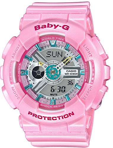 【 BABY-G 】アクティブな女性のためのカジュアルウオッチBABY-Gから、ガーリーとクールを兼ねそろえたモデルが登場。ベースモデルは、メンズライクなデザインが人気のBA-110。甘くなりがちなパステルカラーをケースとバンドに採用しながらも、文字板にメタリックなマルチカラーのパーツデザインを使用することで個性が引き立つカラーリングに仕上がりました。また、ケースとバンドにはパール仕上げを採用し、華やかさを追加。ガーリーなトレンドカラーの中にもクールさを兼ねそろえたBABY-Gです。●耐衝撃構造●10気圧防水機能●ワールドタイム 世界48都市(29タイムゾーン、サマータイム設定機能付き)+UTC(協定世界時)の時刻表示●ストップウオッチ 1/100秒、24時間計、スプリット付き●タイマー セット単位:1分、最大セット:24時間、1秒単位で計測●時刻アラーム5本・時報 アラーム:1本のみスヌーズ機能付き●フルオートカレンダー●12/24時間制表示切替●操作音ON/OFF切替機能●LEDライト 残照機能付き●電池寿命:約2年 / ■精 度:平均月差 ±30秒■ケース/ベゼル材質:樹脂■ガラス:無機ガラス■バンド:樹脂■サイズ:46.3×43.4mm■厚 さ:15.8mm■重 さ:45g■腕周り:125~180mm / 【国内正規品】※時計に組み込まれている電池は動作確認用のモニター用電池です。Feature