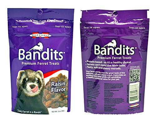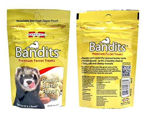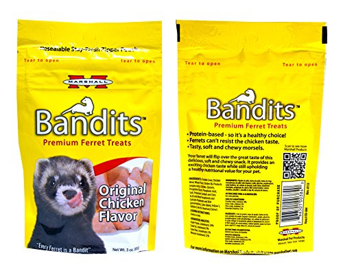 Marshall Bandits Premium Ferret Treats Variety Pack - 5 Flavors (Chicken, Raisin, Peanut Butter, Banana, and Meaty Bacon) - 3 Ounces Each (5 Total Pouches)