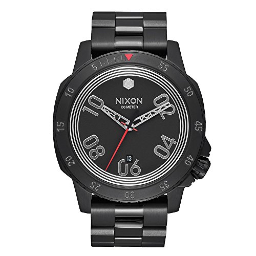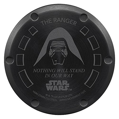 Maintain clean style throughout the galaxy with the uncompromising design of the Nixon® Ranger - The Star Wars® Collection watch! Part of the Star Wars X Nixon Collection. Miyota Japanese quartz three-hand movement with date function and crown placement at 4 o'clock. The dial features printed hour and seconds track on the concave ring, custom molded hands, applied hour markers, and a date window at 6 o'clock. Custom hour and minute hands inspired by the Stormtrooper's helmet ventilation system. (Stormtrooper White) Custom Boba Fett seconds hand. (Boba Fett Red/Gray) Jaster Mereel insignia at 12 O'clock. (Boba Fett Red/Gray) Maroon metallic anodized aluminum bezel inlay with orange Boba Fett kill stripe detailing. (Boba Fett Red/Gray) Custom Solid Stainless Steel Case coated with Cerakote™ with custom bezel geometry inspired by Stormtrooper utility belt. (Stormtrooper White) Case:• 100 meter/10 ATM custom stainless steel case with hardened mineral crystal• Unidirectional stainless steel bezel• Contrast plated stainless steel bezel insert with color fill countdown timer markings• Custom screw bar lugs• Stainless steel double gasket crown, and stainless steel screw down caseback Custom Steel 3 link bracelet coated with Cerakote™ and solid stainless steel double locking clasp with micro adjust. (Stormtrooper White) Custom textile band with solid stainless steel buckle closure. (Boba Fett Red/Gray) Durable and state-of-the-art Cerakote™ ceramic coating is designed to have superior wear resistance. However like any coating, through normal wear and tear, this watch may show wear depicting what a life well lived looks like. (Stormtrooper White) Imported. Measurements: Case Height: 44 mm Case Width: 44 mm Case Depth: 11 mm Band Width: 7⁄8 in Band Circumference/Length: 8 3⁄4 in Weight: 6 oz This product may have a manufacturer's warranty. Please visit the manufacturer'sFeature