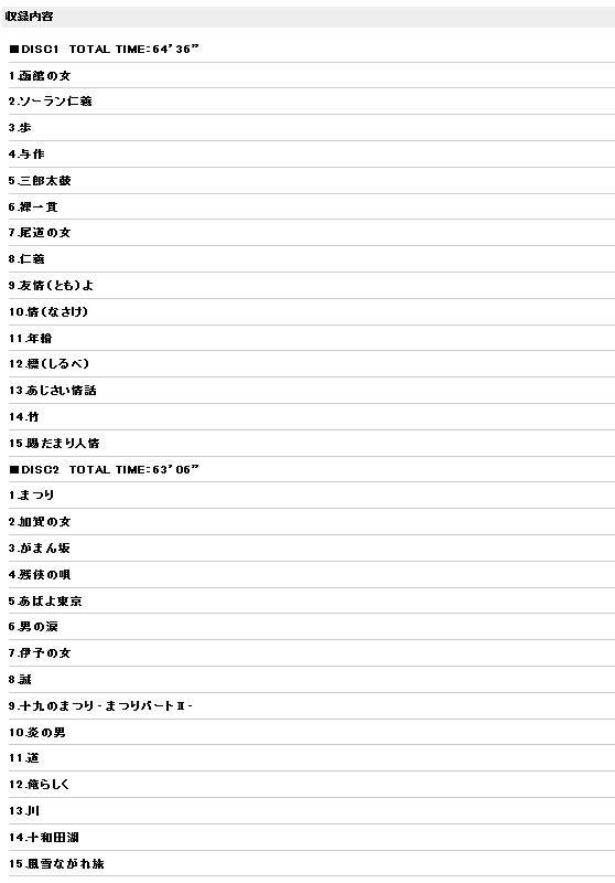 「サブちゃん」の愛称で親しまれている演歌の大御所、北島三郎のヒット曲「函館の女」「まつり」他、選びに選んだ豪華2枚組ベスト第1弾!