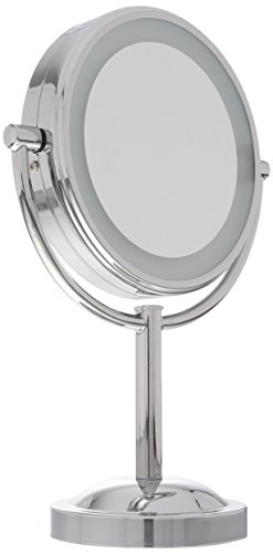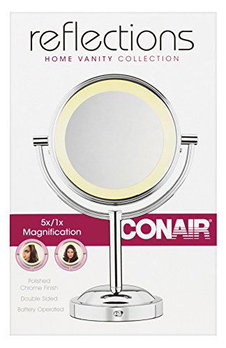 Conair Double-Sided Battery Operated Lighted Makeup Mirror - Lighted Vanity Makeup Mirror; 1x/5x magnification; Polished Chrome Finish