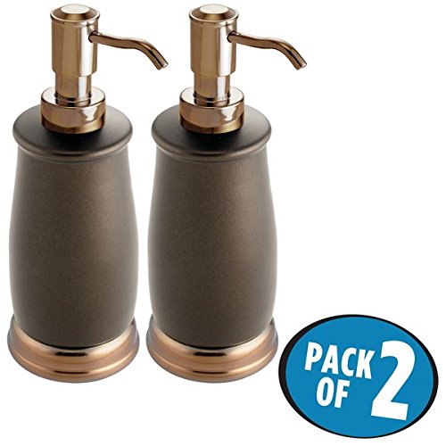 mDesign Stainless Steel Liquid Soap Dispenser Pumps for Bathroom Vanity, Sink - Pack of 2, Split Bronze