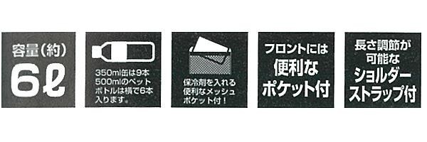 | 折りたたんで持ち運べる便利なクーラーバッグ。350mL缶は9本、500mLのペットボトルは横で6本入ります。保冷剤を入れる便利なメッシュポケット付。 |