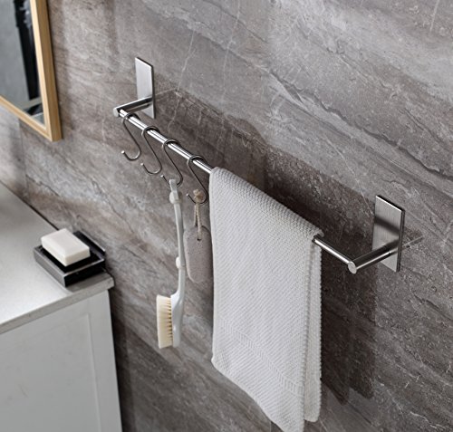 Towel Bar, ICOCO Self Adhesive 15.7-Inch Towel Bar SUS 304 Stainless Steel Rustproof Bathroom Storage Organizer Hanger Wall Mount Contemporary Style, Brushed Finish