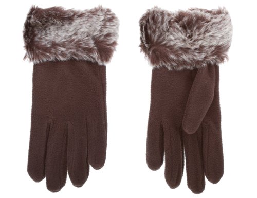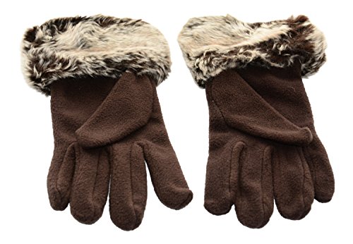 Ladies Warm Fleece Thermal Glove with Faux Fur Trim Cuff (Brown),One Size