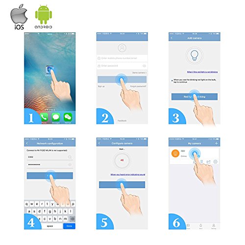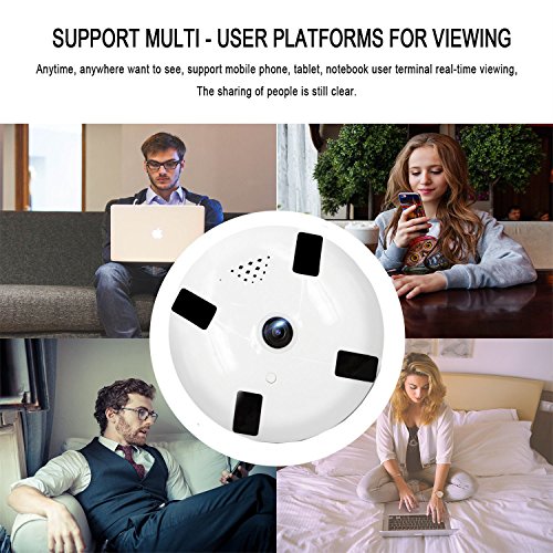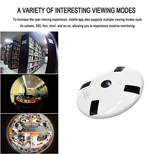 -. Feature : Super wide view angle---360 degree fisheye Wi-Fi IP camera without blind spots. This 360° Wi-Fi camera keeps an eye on every corner in your home/store/office, with Night Vision / Night vision ---The night vision feature makes it easy to see clear video when the condition is dark and the standard video is amazing in the daylight,it is small compact and you are able to integrate it with another wall ornament so it is not noticeable / ADVANTAGES---Pet monitoring, nanny cam, business monitoring, security, vacation home monitoring, senior monitoring, remote live video streaming via Smartphone, download the free APP to view anytime anywhere. / Quick WiFi setup via IOS or Android Smartphone using supplied APP, Remote access to the camera on Smartphone. Loop recording: When the memory full, it will auto cover the oldest video files. / The Mic is very sensitive, and can pick up your voice from a area 40-50 square meter from the camera. you can have a conversation on your phone anywhere in the house using the cameras Mic.So it is widely applied in Home, Store, Office,Warehouse and other fields that need HD live video surveillance
