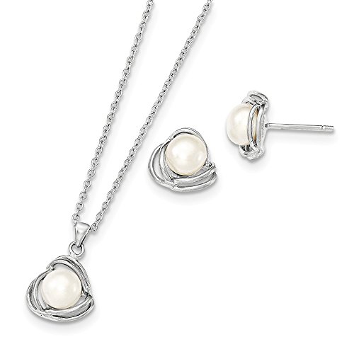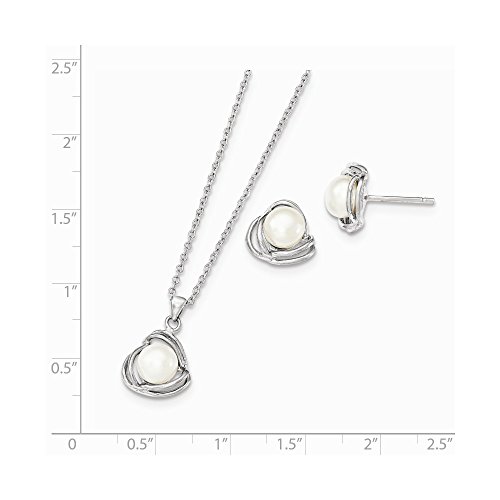 Solid 925 Sterling Silver 6-7mm White FWC Simulated Pearl Neck and Earring Set
