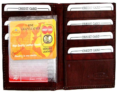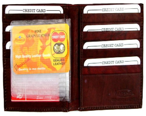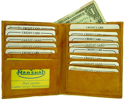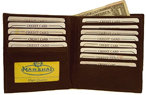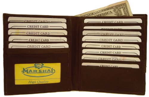 Binding : Apparel Product Description Material: Genuine Leather Bi-fold Size: 8.5' x 4.5' Credit Card Slots: 20 I.D. Window: Yes Currency Pocket: Hideaway zippered pocket; Pocket for cash Other features: Removable plastic credit card holder. Slots under each side for cash. Large Hipster Wallet by Classic Leather. Constructed of soft full grain cowhide leather. An ID window, key holder, a leather divider in the currency compartment, and a plastic insert that holds eight cards or pictures. It measures closed 5' high and 4 1/4' across. This is a well constructed wallet that will last. 0