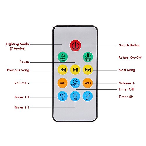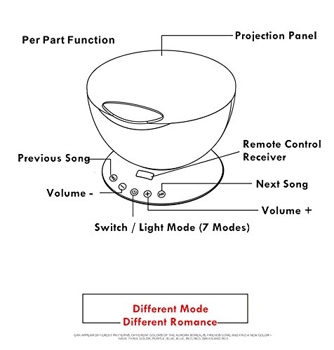 Studio : Amour-Joie Publisher : Amour-Joie Product Description Wattage: 2W Package Size: 12.6*12.6*10.5cm USB Cable Length: 1.2m Audio Cable Length: 0.6M Rated Volt/Current: DC 5V/1A Material: ABS/PS/Metal/Electronic Components Seven Colorful Light Mode: 1. Red, Blue, Green three lights all light(Romantic Atmoshpere) 2. Red blue, Red Green, Blue Green two color light quick flash(Colorful) 3. Red Blue Light Lighting(Purple Atmosphere) 4. Blue Light Lighting(Blue Ocean) 5. Green Light Lighting(Green Aurora Borealis) 6. Red Blue, Green cycled Lighting(Magic Zone) 7. Red Blue Green cycle quick flash(Disco Effect) Notices: 1.Please do not allow children under 6 years old to use it alone. 2.Please do not place the product on non-flat surface to prevent fall broken. 3.Please do not put the battery positive and negative anti-loaded, if installed backwards, the remote control will be hot, you can not use the remote control and cause burns. 4.This product is non-waterproof, prohibited storage or use in the place of humid or high temperature. 5.The way to adjust the angle : you need push the projection panel downward to change the angle, please notice that , it can be adjusted 45°.