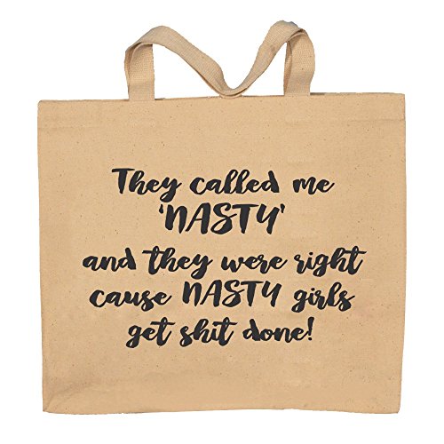 Binding : Apparel Product Description They Called Me Nasty I get Shit Done. A Fun way to show how you feel with a totebag. The Design/Saying is printed on the front of this canvas tote bag. We use the newest best technology to print the design with great inks that are cured into the product. This new high tech way of producing garments is very fade resistant. WE DO NOT USE TRANSFERS. It is great, since you dont have that thick transfer feeling. The feel is very smooth and comfortable. 0