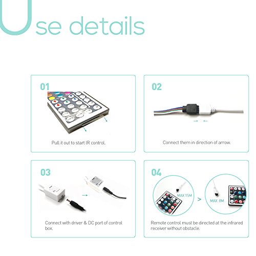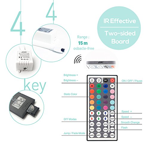 More effective—— Dimming or Color Changing quickly with 44 key IR Remote controller in 50ft when obstacle-free. No worry for response and accuracy.