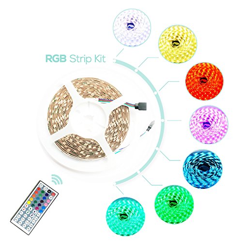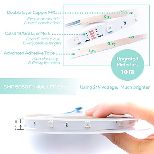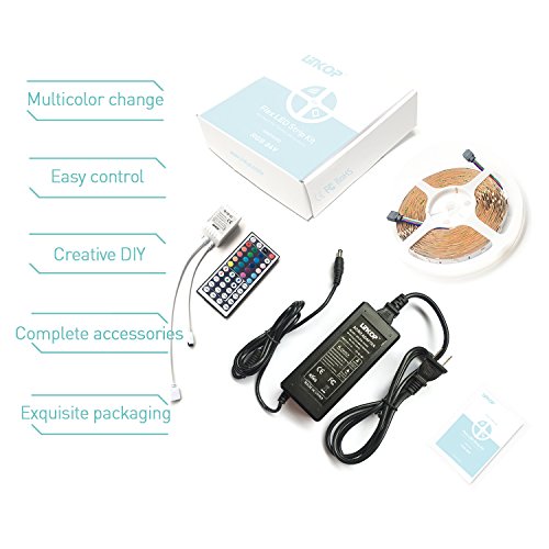 LinKop 32.8ft/10M RGB LED Strip Lights SMD 5050 300leds Flexible Color Changing Full Kit with 44 Key IR Remote Controller and 24V 4A DC Power Supply for Home Decoration