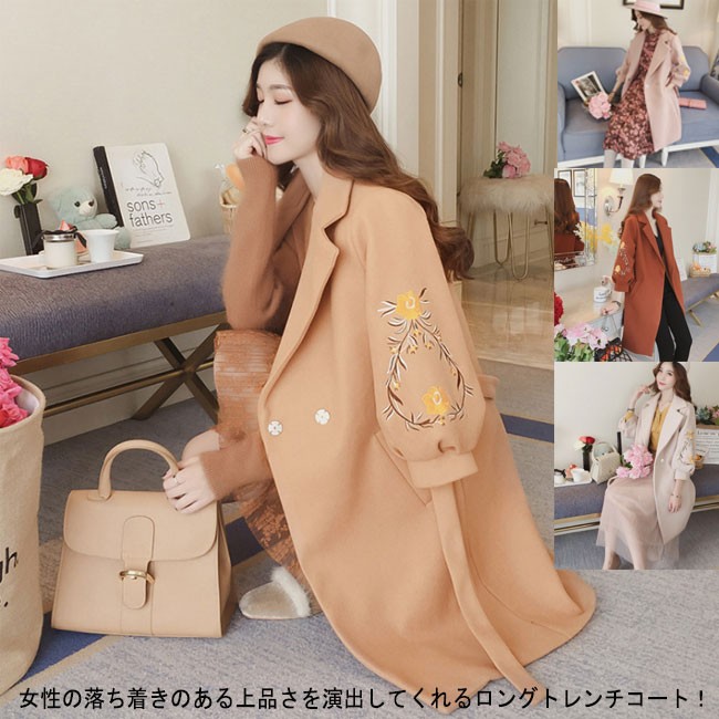 | 商品名 | トレンチコート ロング レディース ワンボタンコート 袖刺繍コート ランタンスリーブ ボリューム袖 ウエストバンド チェスターコート 秋冬コート 2018春冬新作 |