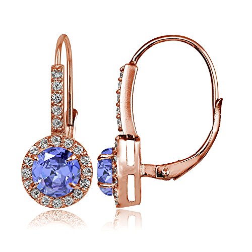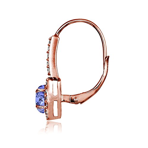 Sterling Silver, Yellow or Rose Gold Flashed Tanzanite and White Topaz Round Leverback Earrings