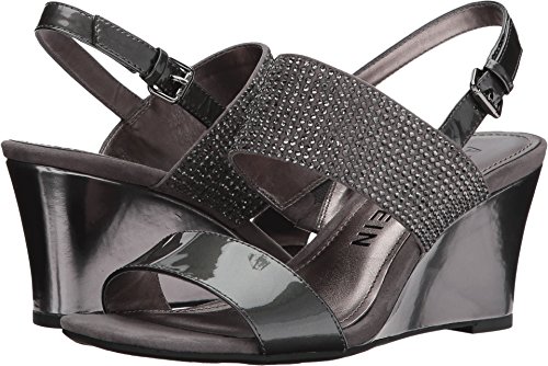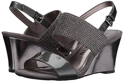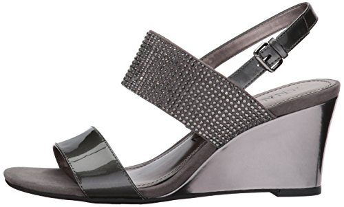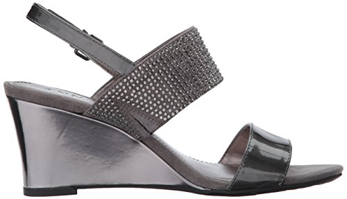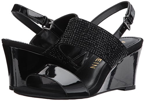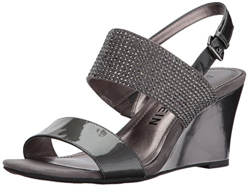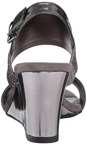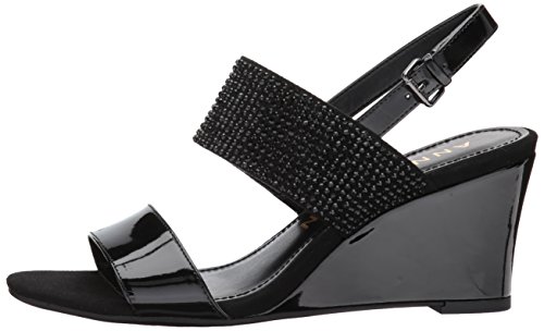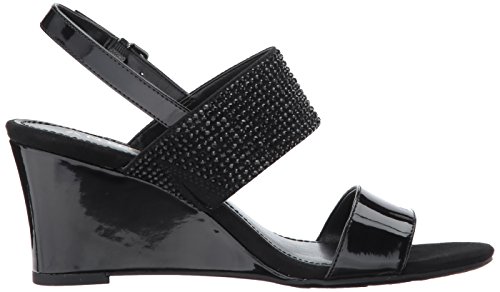 Product DescriptionOpen round toe dress sandal wedge with heat pressed crystals and adjustable buckle at back strap0