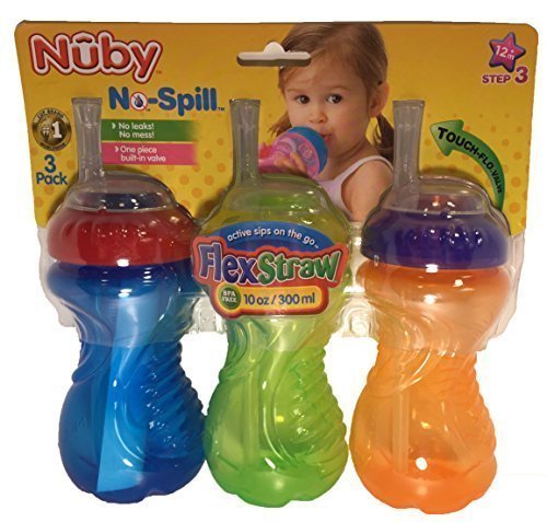 -. Title : Nuby Flexstraw 3-Pack No-Spill 10 Ounce Sippers (Colors Vary)
