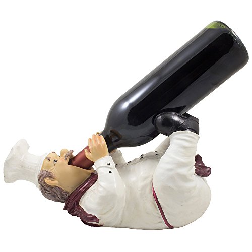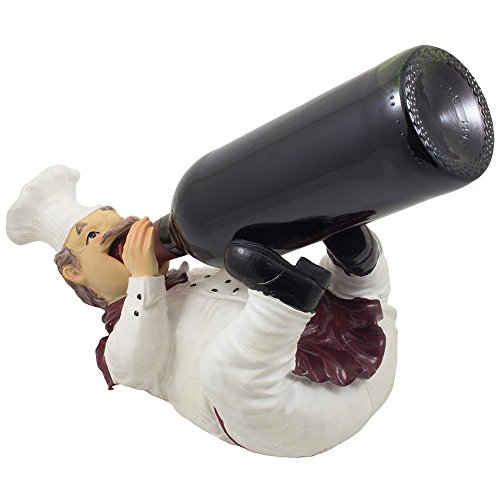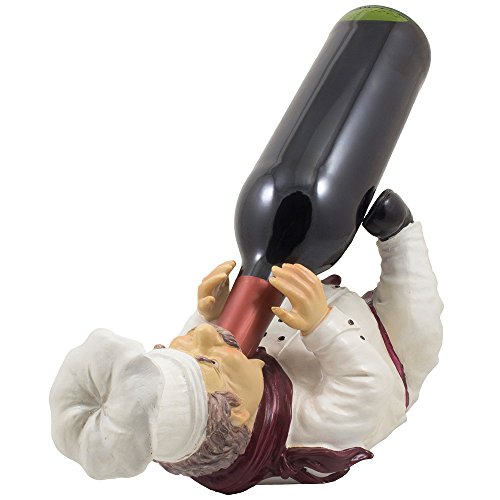 Drinking French Chef Pierre Wine Bottle Holder Statue in Decorative Bar or Tabletop Wine Racks & Country Cottage Decor Display Stands As Gifts for Wine Lovers and Kitchen Gourmet Chefs