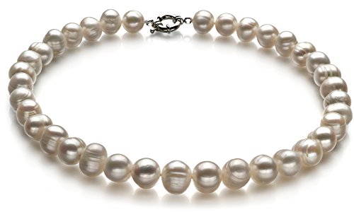 A single string of the most precious cultured pearls you will ever have the luck of finding make a great gift for a special occasion. Freshwater cultured pearls are an economical jewelry investment and the exact right accompaniment to any outfit for all ages. White cultured pearls are always classically in style! The impressive size of these 10 - 11 mm freshwater cultured pearls is sure to please the special lady in your life. It's quite difficult to grow cultured pearls of this size, which only adds to the value of this beautiful strand. The A-graded cultured pearls are grown for many years and boast a beautiful luster. And this simple strand can be part of a wonderful ensemble with either simple studs or dramatic chandelier earrings. You'll know these cultured pearls are safely held in place with a strong sterling silver round clasp each time you wear them, too. This necklace is carefully hand strung, using the finest silk thread. Double knots are hand tied between each and every cultured pearl - to protect the cultured pearls from rubbing against each other. Your necklace will be carefully packed and shipped to you in an elegant velvet lined box and accompanied by lots of free extras, please match your bracelet.. And, if you choose, we would be delighted to gift wrap your necklace and turn this necklace into an unforgettable gift.Feature