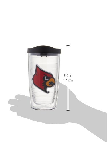 Tervis Louisville Cardinal Head Emblem Individual with Black Lid Tumbler, 16 oz, Clear