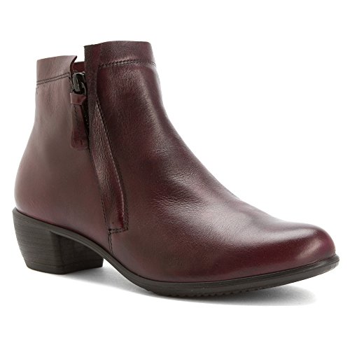 Subtle stitching accents grace the elegant simplicity of the ECCO Touch 35 Zip Bootie, which features a sublimely soft leather upper in a slightly asymmetrical design. Dual-side zippers allow easy on/off, while the finely treaded polyurethane outsole maintains steady traction.