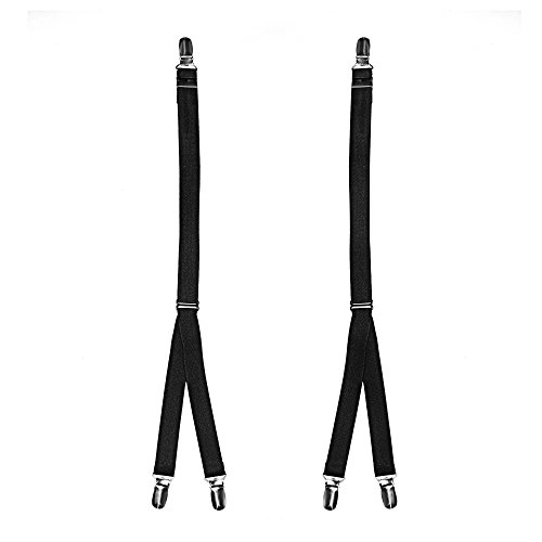 Binding : Apparel Product Description This is a 2-pack of Comfy Clothiers' shirt stays in the Y-style. These shirt stays keep your shirt tucked in to your pants or dress slacks so you look sharp and professional all day long. They also keep your socks up too! To use, simply attach the side that has one clip to your socks and the end that has two clips to your shirt. Repeat for the other leg. Adjust as needed. 0