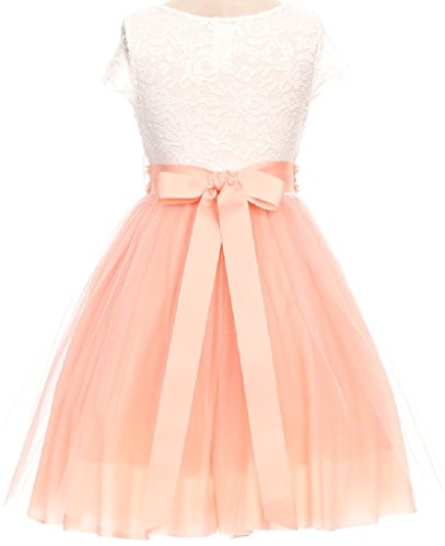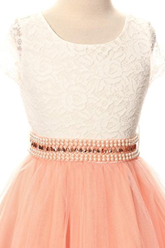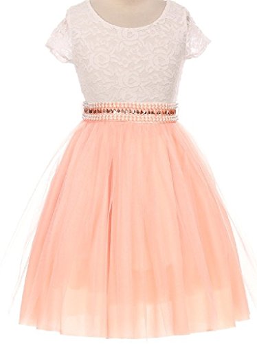 Gorgeous dress that complements the features of your special little girl! Cap Sleeve Lace Top Tulle Bottom Flower girls Dresses. Stone Rhinestone Belt on the waist. Zip up back and tie-back sash. Dress is tea length and fabulous! Perfect for flower girl, Junior Bridesmaid, Easter, Pageant, Graduation and other special occasions.Feature