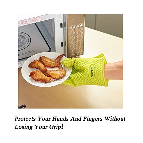 - SILICONE SAFETY – Our five finger design has greater versatility than oven mittens. Remember the last time you slipped with a hot container? Never let that happen again! Have full control of hot items with our firm grip gloves and avoid accidents.
