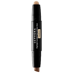 A double-ended contour stick with a cream-to-powder contour formula and cream, modern matte highlighter.
