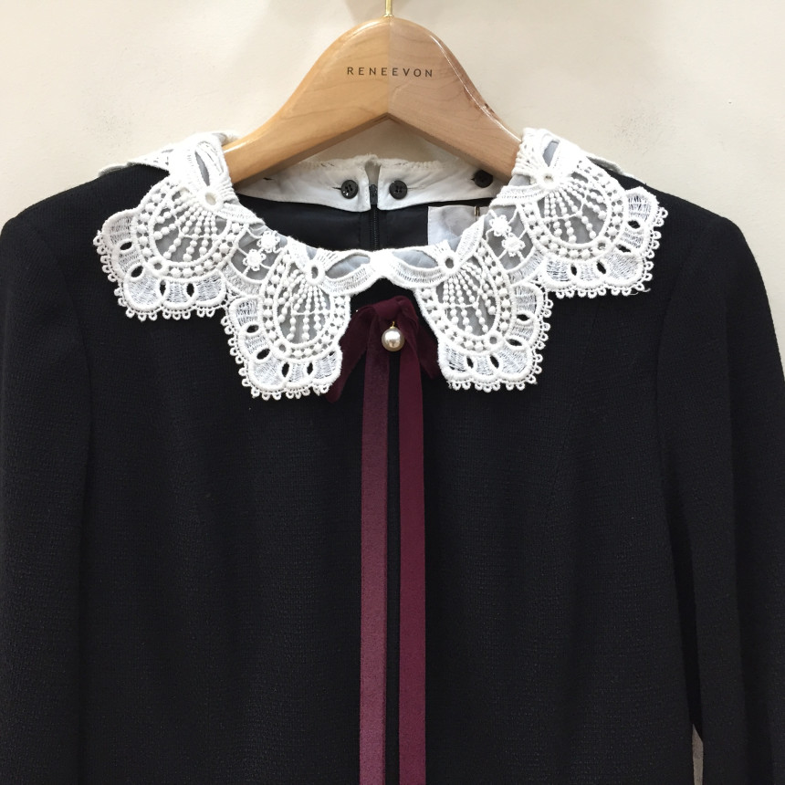 레이스 배색카라로 포인트를 준 솔리드 원피스입니다.