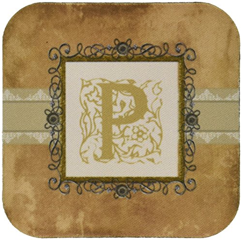 3dRose cst_186362_2 P Initial Vintage Elegant Vines & Flowers in Sepia & Pewter Look Soft Coaster (Set of 8)