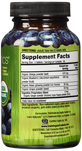 Irwin Naturals Organic Brain Support Diet Supplement, 60 Count