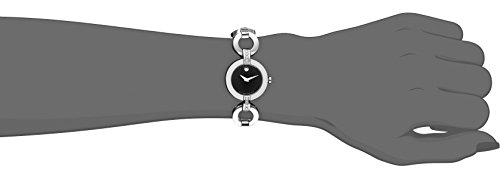 - Feature : Round bracelet watch in silver-tone stainless steel with bracelet band featuring black museum dial and diamonds at twelve o'clock and at lugs / Swiss-quartz movement with display / Protective scratch-resistant-sapphire crystal dial window / Features jewelry-clasp closure / Water resistant to 99 feet (30 M): withstands rain and splashes of water, but not showering or submersion